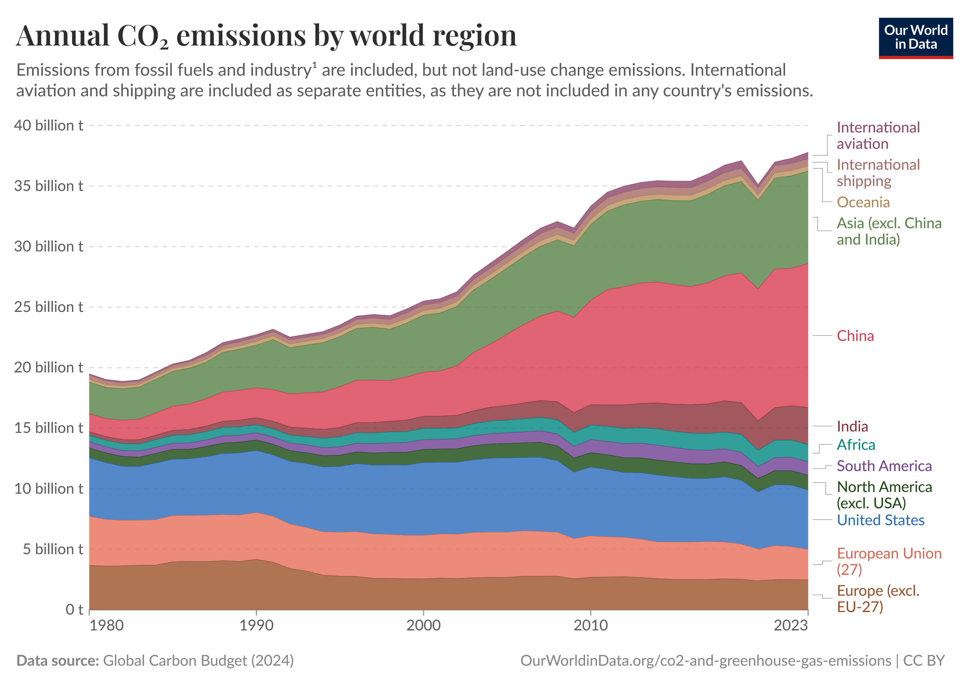 We expect living standards in the Global South to rise further as they did in the past, perhaps reaching per capita levels similar to those in Europe by mid to end of this century. In the past, all world regions with major economic growth saw a steep upward trend in CO2 emissions (Fig. 7). There is no reason why this trend would stop.